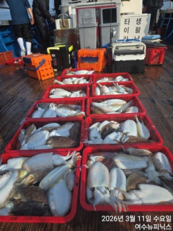 #여수뉴피닉스호ㅡ3월11일심해갑조황#이번주말(일),(월),,자리많아요~ 3월11일 심해갑오징어 조황입니다.날씨 좋고, 바다상황도 좋으니마릿수는 따라서 좋아지네요. 씨알
